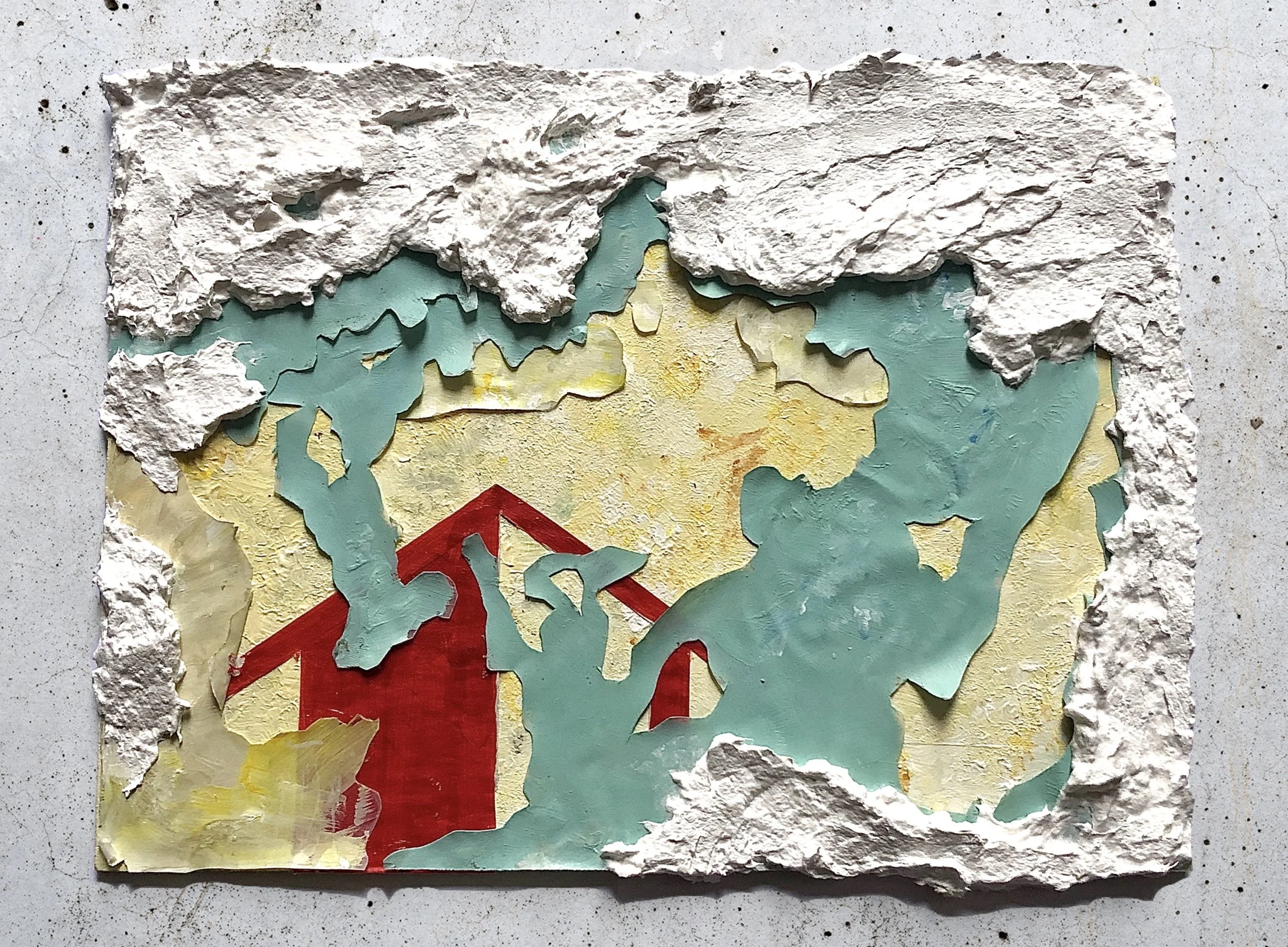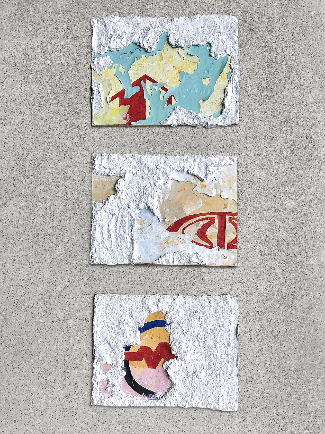 2020 ㋡ 15 x 10 cm each ㋡ Acrylic paint , plaster and tracing paper on recycled wood